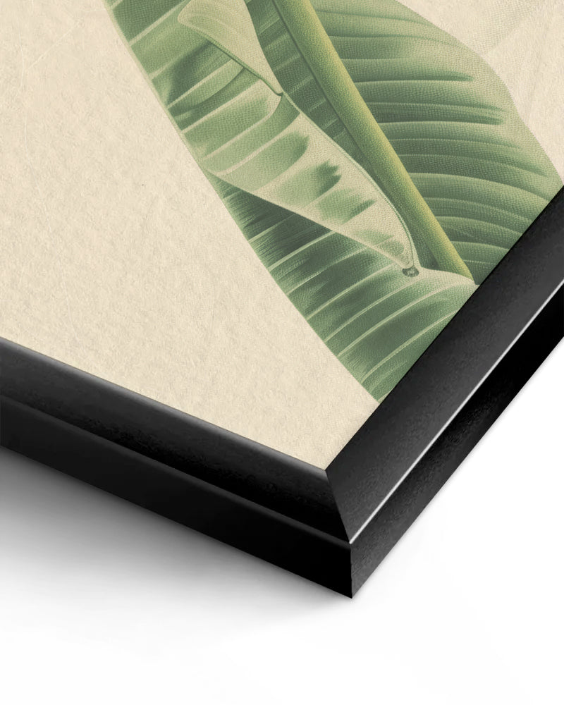 - Lámina enmarcada con estructura de aluminio negro y acabado mate.